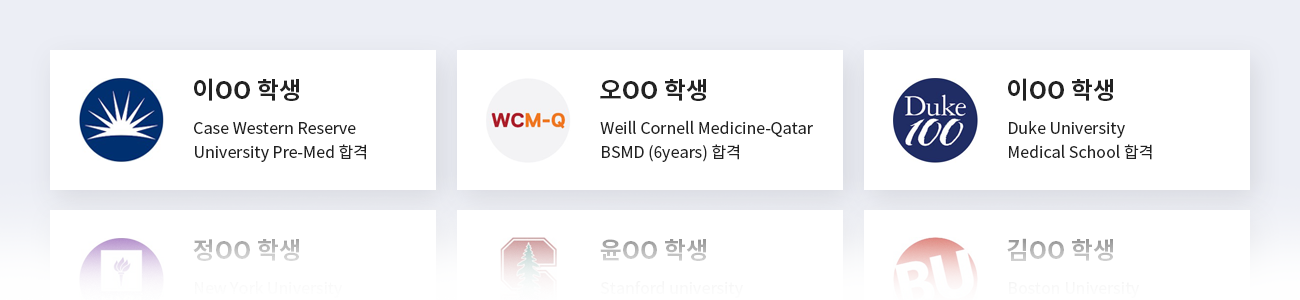 미국 의치약대 최종 합격한 학생들의 주요 실적을 정리합니다.
